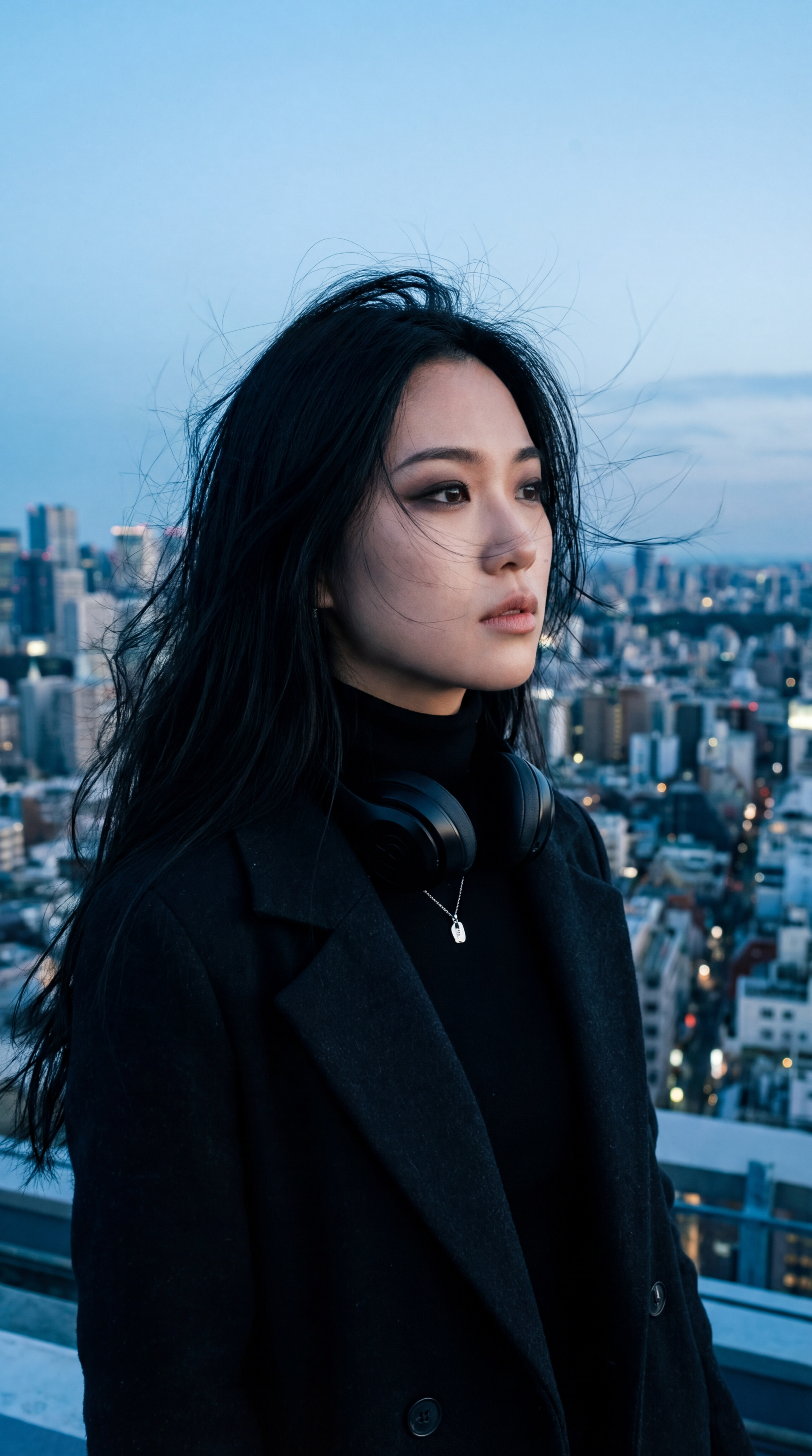 There is a calm in this portrait that my other portraits do not have. Most of them are performing something. Even the honest ones perform honesty. This one performs nothing. She is just on a roof. The city does not know her name.